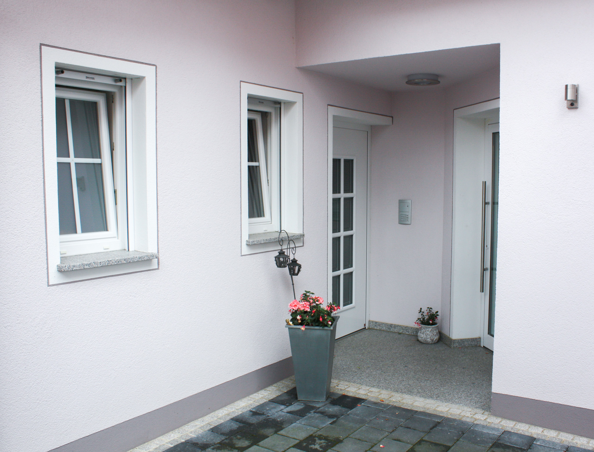 Auftragen von Außenputz (z. B. Grund-, Struktur-, Reibe- oder Kratzputz) zur Gestaltung und zum Schutz der Fassade.